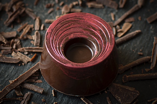 karamell alapú feketeribizli krém – cukor, glükóz, tejszín, feketeribizli püré, fehér csokoládé)