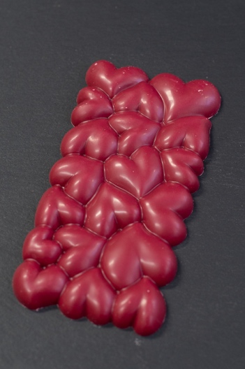 liofilizált málnával ízesített csokoládé tábla – (nádcukor, kakaóvaj, liofilizált málna, napraforgó lecitin)