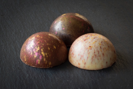 karamell alapú kardamomos meggy krémmel töltött bonbon – (cukor, glükóz,meggy-püré, kardamom, fehér csokoládé, konyak)